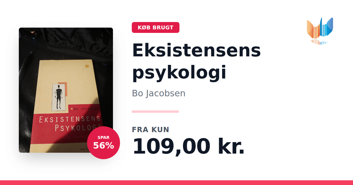 Lige nu kan du købe "Eksistensens psykologi" af Bo Jacobsen til kun 109,00 kr. Du sparer hele 56% af nyprisen! Bogen du ser her er brugt, og i god stand. Vi har i øjeblikket 2 eksemplarer til salg af "Eksistensens psykologi", så husk at se de forskellige udgaver.