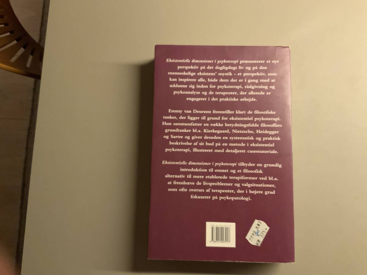 Lige nu kan du købe "Eksistentielle dimensioner i psykoterapi" af Emmy Van Deurzen til kun 122,00 kr. Bogen du ser her er brugt, og i god stand. Vi har i øjeblikket kun et enkelt eksemplar til salg af "Eksistentielle dimensioner i psykoterapi", så slå til mens du kan!