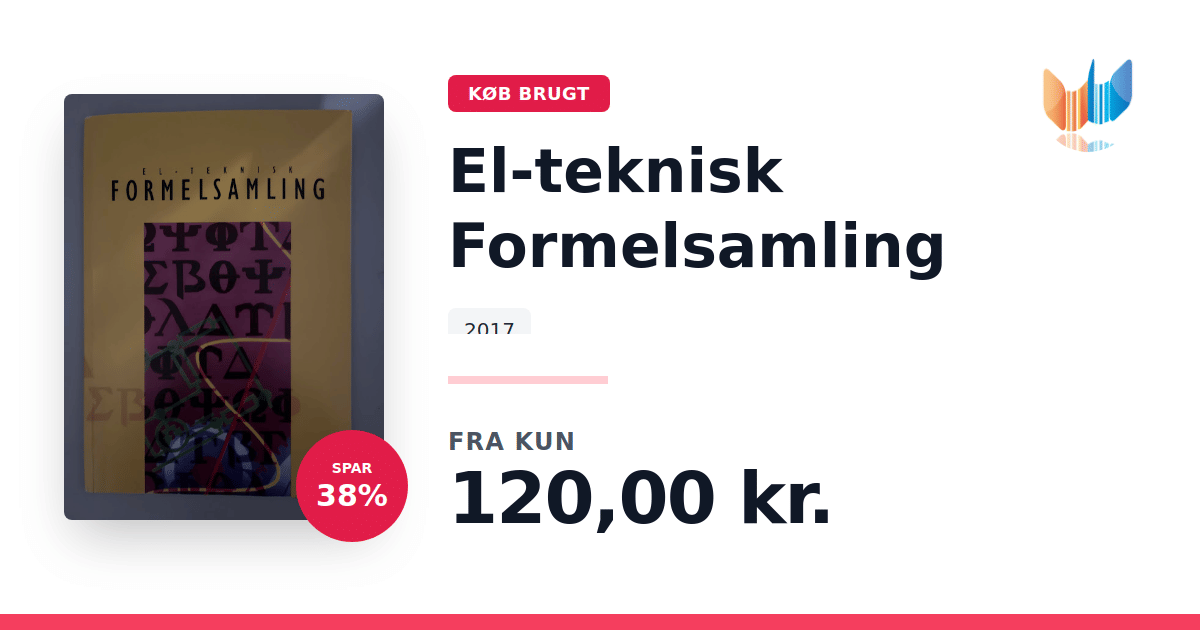 Lige nu kan du købe "El-teknisk Formelsamling" til kun 120,00 kr. Du sparer hele 38% af nyprisen! Bogen du ser her er brugt, og i god stand. Vi har i øjeblikket 2 eksemplarer til salg af "El-teknisk Formelsamling", så husk at se de forskellige udgaver.