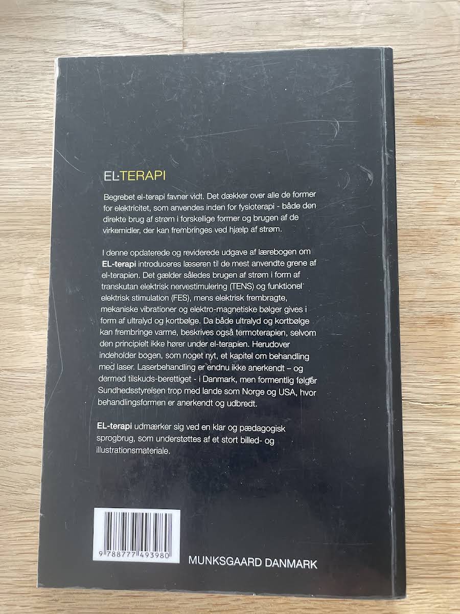 "El terapi" giver en grundig introduktion til de mest udbredte metoder inden for el-terapi, og den er designet til både fysioterapeutstuderende og uddannede fysioterapeuter. Bogen udforsker bredden af elektricitetens anvendelse i fysioterapi – fra den direkte brug af strøm, som det ses ved transkutan elektrisk nervestimulering (TENS) og funktionel elektrisk stimulation (FES), til de effektive virkemidler skabt ved hjælp af elektrisk frembragte mekaniske vibrationer og elektro-magnetiske bølger i form af ultralyd og kortbølge. I denne udgave bliver også termoterapien belyst, idet både ultralyd og kortbølge anvendes til at skabe varme, og der er desuden tilføjet et eftertragtet kapitel om behandling med laser – en metode, der trods manglende godkendelse fra de danske Sundhedsmyndigheder, vinder indpas både nationalt og internationalt. Med et klart og pædagogisk sprog og et rigt billed- og illustrationsmateriale er "El terapi" et uundværligt redskab for alle, der ønsker at opnå indsigt i og praktisk viden om el-terapiens mange facetter.