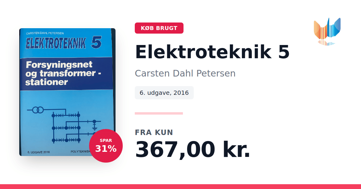 Lige nu kan du købe "Elektroteknik 5" af Carsten Dahl Petersen til kun 367,00 kr. Du sparer hele 31% af nyprisen! Bogen du ser her er brugt, og i perfekt stand. Vi har i øjeblikket kun et enkelt eksemplar til salg af "Elektroteknik 5", så slå til mens du kan!