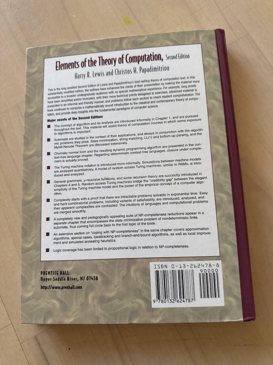 • Elements of the Theory of Computation, Harry R. Lewis, Christos H. Papadimitriou, 9780132624787