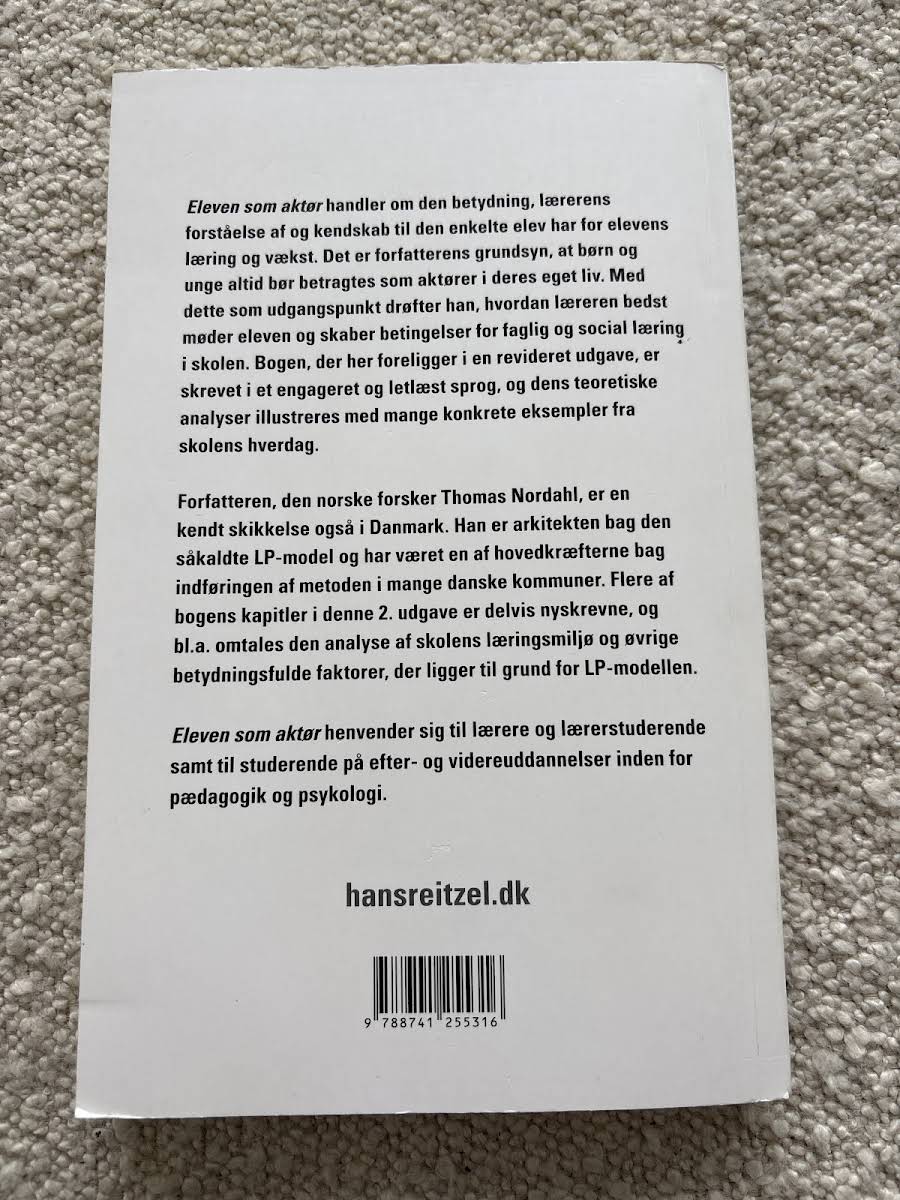 Thomas Nordahl, kendt som arkitekten bag LP-modellen, præsenterer i Eleven som aktør: Fokus på elevens læring og handlinger i skolen en grundig udforskning af, hvordan et dybtgående kendskab til den enkelte elev kan være altafgørende for både læring og udvikling. Bogen fremhæver, hvordan lærerens forståelse og fortolkning af elevens intentioner er med til at skabe en meningsfuld og støttende læringssituation i skolen. Med en skarp fokus på de pædagogiske relationer giver forfatteren læseren et værdifuldt redskab til at styrke indsatsen for den enkelte elev. Gennem velovervejede eksempler og praktiske perspektiver viser Nordahl, hvordan en bevidst tilgang til elevens handlinger kan fremme både undervisning og læring i et dynamisk klasseværelse.