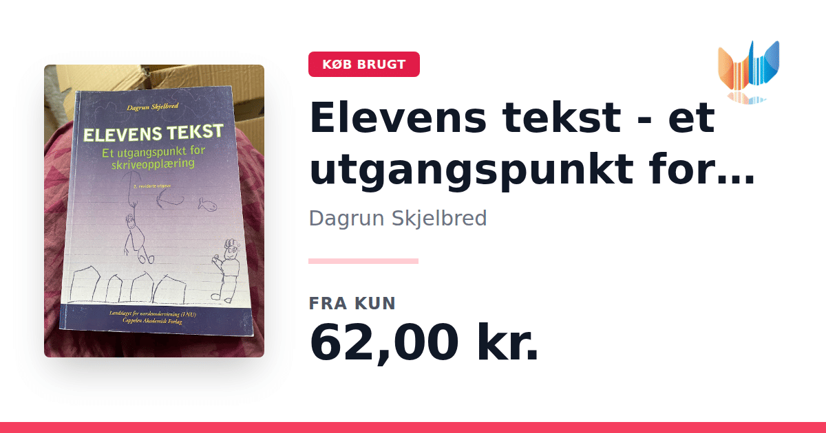 Lige nu kan du købe "Elevens tekst - et utgangspunkt for skriveopplæring" af Dagrun Skjelbred til kun 62,00 kr. Bogen du ser her er brugt, og i god stand. Vi har i øjeblikket kun et enkelt eksemplar til salg af "Elevens tekst", så slå til mens du kan!