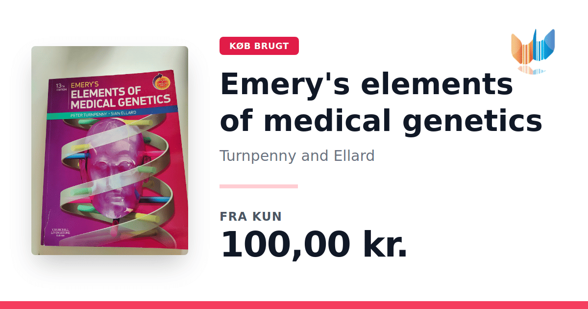 Lige nu kan du købe "Emery's elements of medical genetics" af Turnpenny and Ellard til kun 100,00 kr. Bogen du ser her er brugt, og i god stand. Vi har i øjeblikket 3 eksemplarer til salg af "Emery's Elements of Medical Genetics", så husk at se de forskellige udgaver.