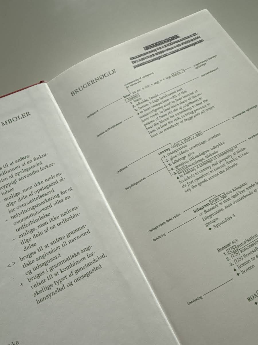 Ordbogen indeholder: 21.700 opslagsord Udførlige grammatiske oplysninger til de enkelte opslagsord 14.900 engelske ordforbindelser og standardfraser på engelsk Appendikser med incoterms, mål og vægt, valutaer, nationalitetsbetegnelser og almindelige forkortelser En ordbog i meget fin stand - nærmest som ny. Eneste, men er firmastempel på side 2. Bruges ikke længere og sælges af denne grund.