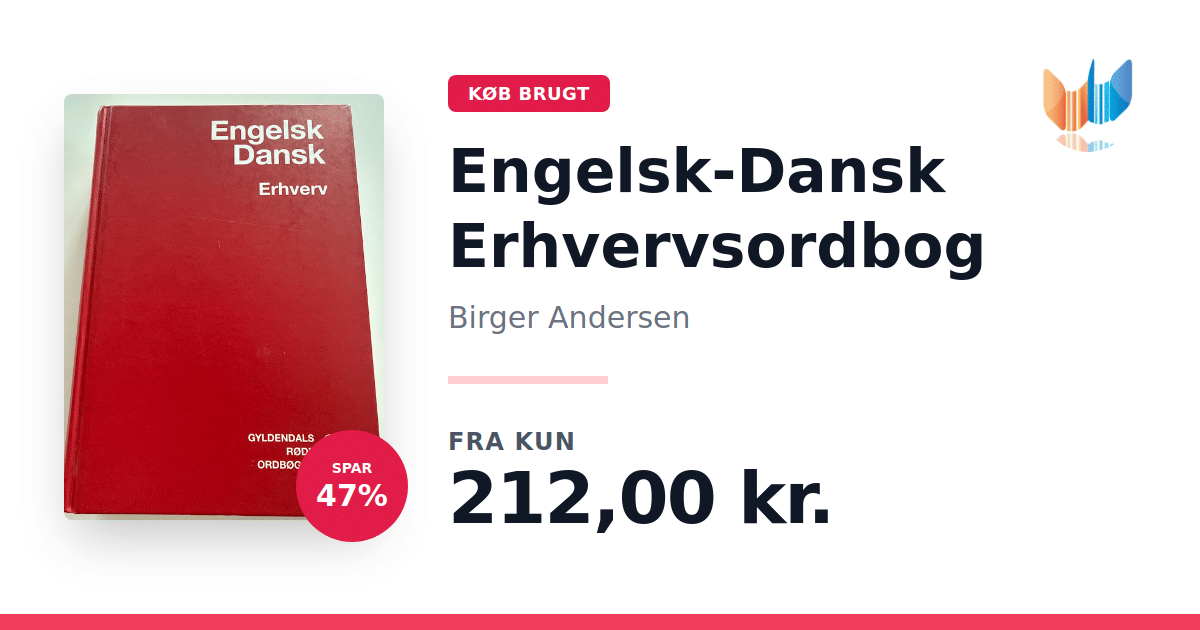 Lige nu kan du købe "Engelsk-Dansk Erhvervsordbog" af Birger Andersen til kun 212,00 kr. Du sparer hele 47% af nyprisen! Bogen du ser her er brugt, og i perfekt stand. Vi har i øjeblikket kun et enkelt eksemplar til salg af "Engelsk-Dansk Erhvervsordbog", så slå til mens du kan!