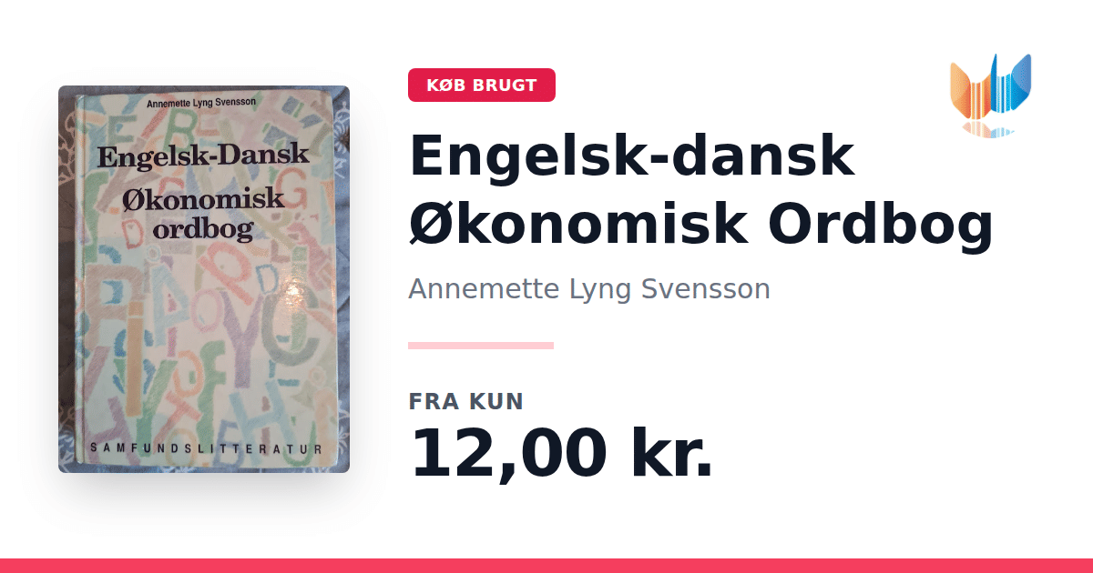 Lige nu kan du købe "Engelsk-dansk Økonomisk Ordbog" af Annemette Lyng Svensson til kun 12,00 kr. Bogen du ser her er brugt, og i god stand. Vi har i øjeblikket 2 eksemplarer til salg af "Engelsk-dansk økonomisk ordbog", så husk at se de forskellige udgaver.