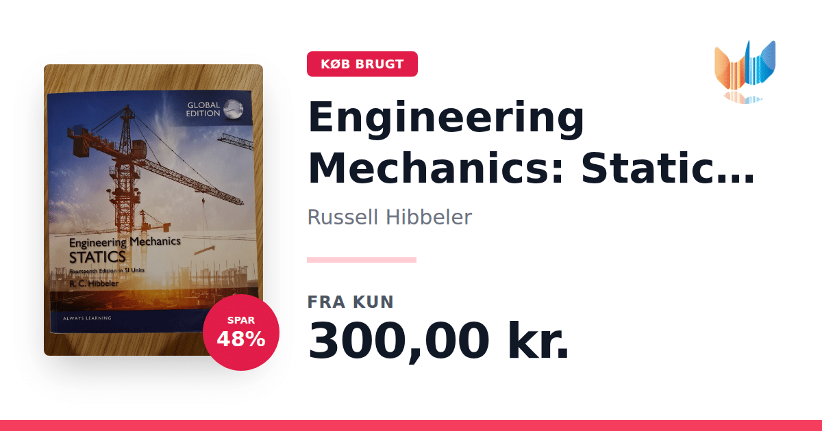 Engineering Mechanics: Statics, SI-udgave, 14. udgave (2016) af Russell Hibbeler giver en klar og grundig gennemgang af teori og anvendelse inden for ingeniørmekanik. Bogen bygger på forfatterens mangeårige undervisningserfaring og de erfaringer, han har høstet fra studerende og kolleger i undervisningsfeltet. Denne udgave introducerer nye "Preliminary Problems", der understøtter udviklingen af begrebsmæssig forståelse og styrker problemløsningskompetencer. Hvert kapitel leder læseren trin for trin gennem de grundlæggende principper i statik. Med over 700 sider rummer teksten et bredt udvalg af opgaver fra forskellige ingeniørdiscipliner. Opgaverne er designet med realistiske, praksisnære situationer og varierer i sværhedsgrad, så både begyndere og øvede studerende bliver udfordret og kan opbygge en solid faglig ballast.