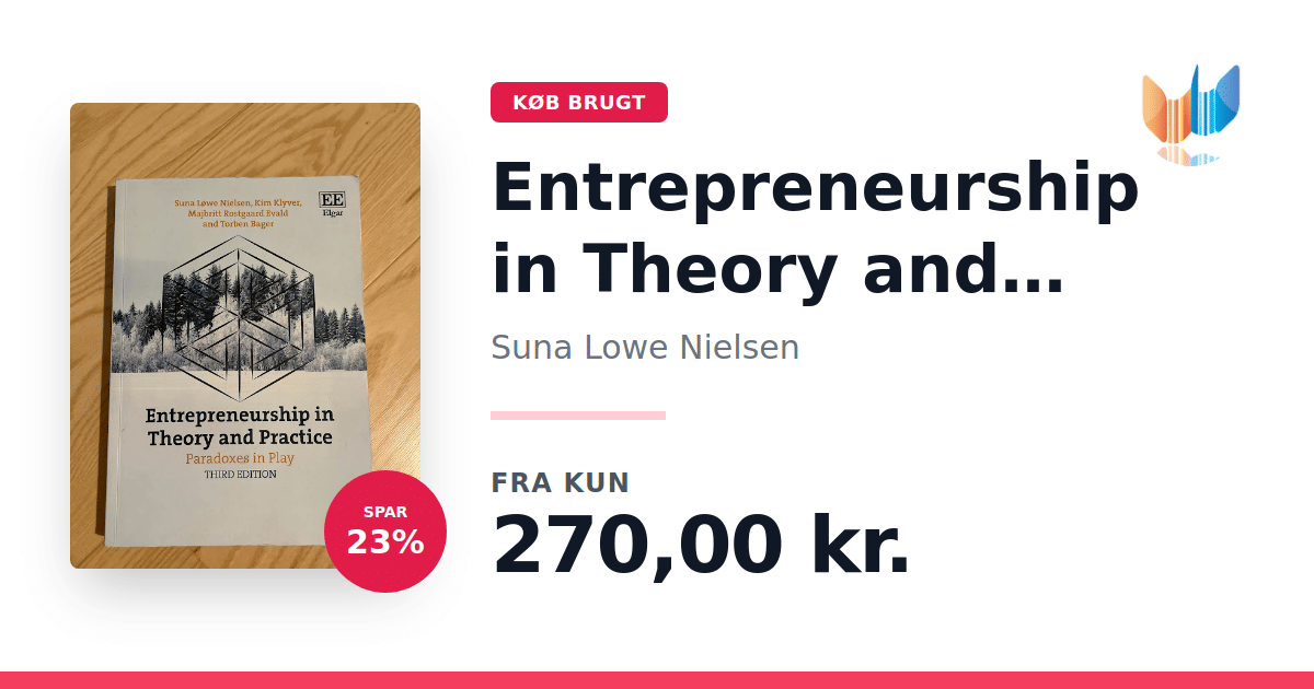 Entrepreneurship in Theory and Practice: Paradoxes in Play, 3. udgave (2021) af Suna Løwe Nielsen, Kim Klyver, Majbritt Rostgaard Evald og Torben Bager giver en nuanceret indføring i entreprenørskab gennem både teori og praksis. Hvert kapitel præsenterer centrale dilemmaer som paradokser, der udfordrer læseren til at reflektere over egne valg og arbejdsmetoder i den virkelige verden. Med 352 sider spækket med internationale cases fra fremtrædende forskere som William B. Gartner og Saras Sarasvathy kombinerer bogen teori, øvelser og handlingsorienterede opgaver. Den tredje udgave opdaterer læseren på emner som bæredygtighed, cirkulær økonomi, design thinking, teknologi-entreprenørskab og nystartede ventures. Denne paperback på engelsk er ideel for bachelorstuderende på indledende såvel som avancerede kurser i entreprenørskab. Uanset forudgående erfaring inviterer bogen til aktiv deltagelse gennem teori, praksis og kritiske refleksioner.