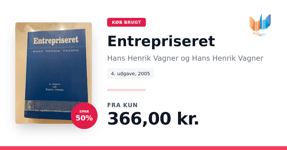 Lige nu kan du købe "Entrepriseret" af Hans Henrik Vagner og Hans Henrik Vagner til kun 366,00 kr. Du sparer hele 50% af nyprisen! Bogen du ser her er brugt, og i god stand. Vi har i øjeblikket kun et enkelt eksemplar til salg af "Entrepriseret", så slå til mens du kan!
