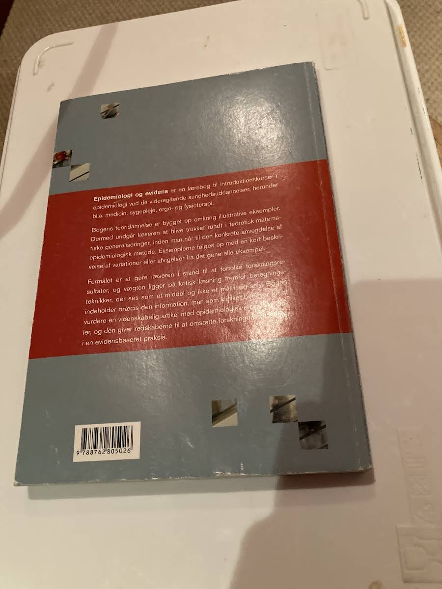 Epidemiologi og evidens er udarbejdet som en introduktionslærebog til epidemiologi for de videregående sundhedsuddannelser, herunder medicin, sygepleje, ergo- og fysioterapi. Bogens teoretiske fundament er bygget op omkring illustrative eksempler, som gør det muligt for læseren at forstå de praktiske anvendelser af epidemiologiske metoder uden først at skulle navigere i omfattende teoretisk-matematiske generaliseringer. Hvert eksempel følges af en kort redegørelse for variationer og afvigelser, og formler til beregning af centrale parametre er samlet i overskuelige bokse i slutningen af hvert afsnit. Med fokus på kritisk læsning frem for beregningsfærdigheder, udstyrer bogen klinikere med den nødvendige viden til at vurdere videnskabelige artikler med et epidemiologisk og statistisk perspektiv og danner et solidt grundlag for videre studier i videnskabsteori.