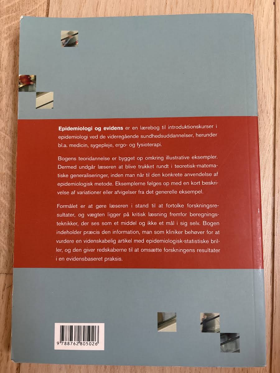 Epidemiologi og evidens er udarbejdet som en introduktionslærebog til epidemiologi for de videregående sundhedsuddannelser, herunder medicin, sygepleje, ergo- og fysioterapi. Bogens teoretiske fundament er bygget op omkring illustrative eksempler, som gør det muligt for læseren at forstå de praktiske anvendelser af epidemiologiske metoder uden først at skulle navigere i omfattende teoretisk-matematiske generaliseringer. Hvert eksempel følges af en kort redegørelse for variationer og afvigelser, og formler til beregning af centrale parametre er samlet i overskuelige bokse i slutningen af hvert afsnit. Med fokus på kritisk læsning frem for beregningsfærdigheder, udstyrer bogen klinikere med den nødvendige viden til at vurdere videnskabelige artikler med et epidemiologisk og statistisk perspektiv og danner et solidt grundlag for videre studier i videnskabsteori.