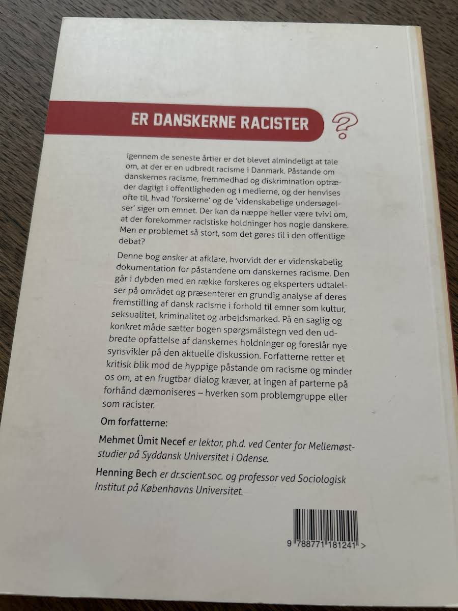 Er danskerne racister? I denne tankevækkende bog tager forfatterne udgangspunkt i en over 20-årig undersøgelse af racisme i Danmark og stiller skarpt på, om den almindelige forestilling om et fremmedfjendsk folk rummer noget sandhed. Undersøgelsen viser, at de udbredte antagelser om dansk racisme, fremmedhad og islamofobi ikke understøttes af den dokumentation, der ligger til grund for påstandene. Forfatterne pointerer, at forekomsten af sådanne fænomener eksisterer, men i langt mindre omfang og med en anden karakter, end hvad debatten ofte giver udtryk for. Ved at præsentere saglig viden og dybtgående indsigt, åbner bogen op for en nuanceret debat om et komplekst samfundsproblem. Mehmet Ümit Necef, lektor, ph.d. ved Center for Mellemøststudier på Syddansk Universitet i Odense, og Henning Bech, dr.scient.soc. og professor ved Sociologisk Institut på Københavns Universitet, bidrager med væsentlig forskning og reflekteret analyse.