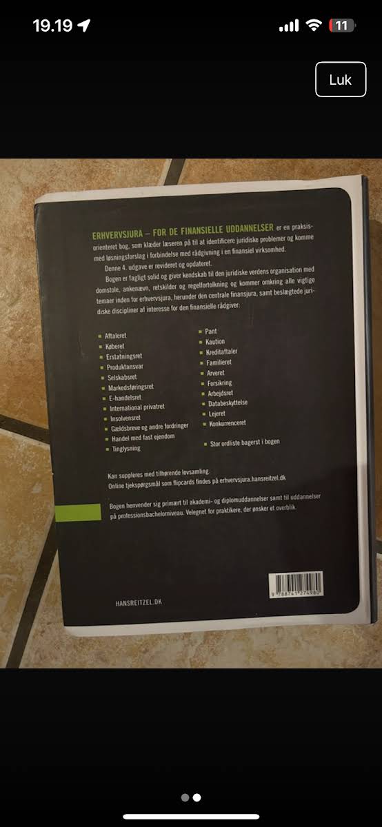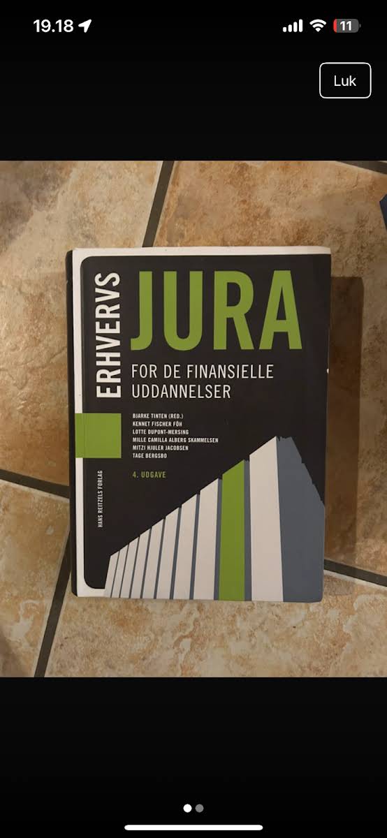 Erhvervsjura – for de finansielle uddannelser er en grundig og opdateret lærebog, der henvender sig til studerende på både akademi-, diplom- og professionsbachelor-niveau. Bogen behandler alle centrale emner inden for erhvervsjura og giver en systematisk gennemgang af retskilder, retsvæsen, kreditorforfølgning, aftaleret, gældsbreve og andre fordringer samt køb og handel med fast ejendom. Desuden sættes fokus på insolvens, pant, tinglysning, kaution og kreditaftaler. I de videre kapitler uddybes erstatningsret, produktansvar, forsikring, selskabsret, markedsføringsret, konkurrenceret, e-handelsret, databeskytelse, lejeret, arbejdsret samt familie- og arveret. Den fjerde udgave fra 2019 giver studerende et solidt fundament i erhvervsjuraens mange facetter og er et uundværligt redskab for dem, der ønsker et indgående kendskab til de juridiske forhold inden for de finansielle uddannelser.