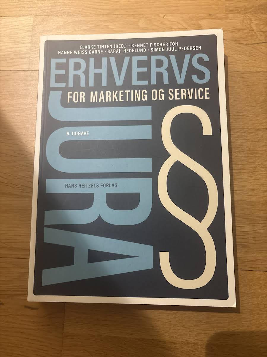 Erhvervsjura – for marketing og service, 9. udgave, er en fagligt solid og pædagogisk lærebog designet til studerende på markedsførings-, service- og handelsøkonomuddannelserne. Bogen er tilpasset de nyeste studieordninger og giver et solidt grundlag for forståelsen af erhvervsjura med særlig relevans inden for marketing og service. Bogen behandler alle de centrale juridiske områder, herunder juridisk metode, retssystemet, aftaleret, køberet, erstatningsret, produktansvar, selskabsret, markedsføringsret, e-handelsret, varemærkeret, persondataret samt servicejura og HR-jura. Sammen med lærebogen følger en opdateret og omfattende lovsamling – Erhvervsjura – lovsamling 2023-2024 – samt en ny opgavesamling, der understøtter læring og faglig fordybelse.