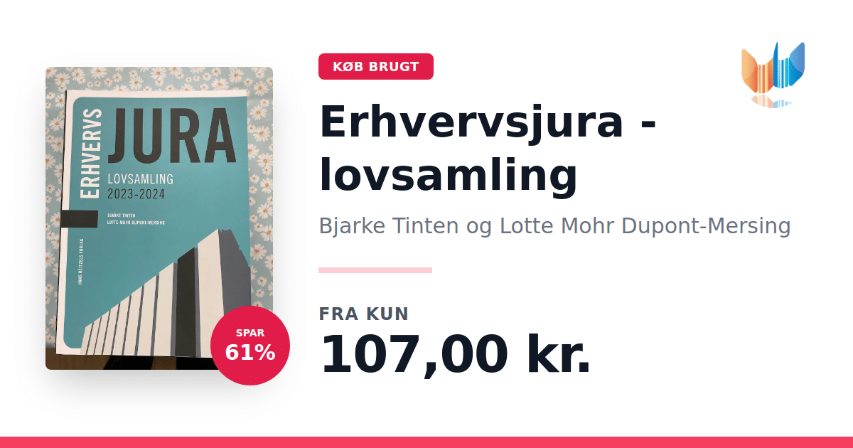 Erhvervsjura – lovsamling 2023-2024 er en opdateret lovsamling, der supplerer de centrale lærebøger om erhvervsjura. Samlingen beskæftiger sig bredt med det erhvervsretlige område og er udformet med henblik på at dække et omfattende pensum. Med fokus på studieretninger som finansøkonom, markedsføringsøkonom og andre KVU-uddannelser, er samlingen også relevant for akademiuddannelsen i finansiel rådgivning. Den anvendes desuden inden for indledende erhvervsretlige kurser på uddannelser som HA, HD og lignende. Med sin 11. udgave fra Hans Reitzel er samlingen et uundværligt redskab for de studerende, der ønsker opdateret og målrettet indsigt i erhvervsretten.
