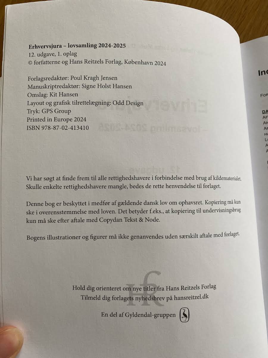 Erhvervsjura - lovsamling 2024-2025 (2. udgave) af Bjarke Tinten og Lotte Mohr Dupont-Mersing samler alle gældende erhvervsretlige love, bekendtgørelser og forordninger. Denne opdaterede udgave er nøje struktureret, så stoffet præsenteres overskueligt. Lovsamlingen fungerer som et uundværligt supplement til lærebøger om erhvervsjura. Den dækker det erhvervsretlige område bredt og giver et samlet overblik over det nødvendige pensum. Den retter sig mod finansøkonomer, markedsføringsøkonomer og andre KVU-uddannelser samt studerende på akademiuddannelsen i finansiel rådgivning. Samtidig er den velegnet til indledende erhvervsretlige kurser på HA, HD og beslægtede uddannelser.