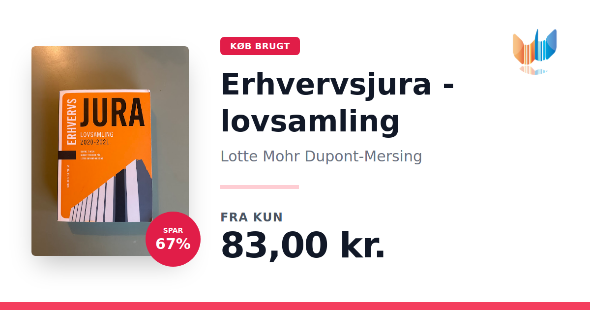 Erhvervsjura – lovsamling 2020-2021 udgør et omfattende supplement til de almindelige lærebøger i erhvervsret. Med et indhold, der dækker det erhvervsretlige område bredt, er denne lovsamling sammensat af Kennet Fischer Föh, Bjarke Tinten og Lotte Mohr Dupont-Mersing og udgivet af Gyldendal i 2020. Med sine 828 sider indeholder samlingen en opdateret gennemgang af de væsentlige love og regler, som studerende inden for finans, markedsføring og beslægtede erhvervsuddannelser kan drage nytte af. Bogen er et uundværligt redskab for indledende erhvervsretlige kurser på blandt andet HA, HD og andre relevant uddannelsesretninger.