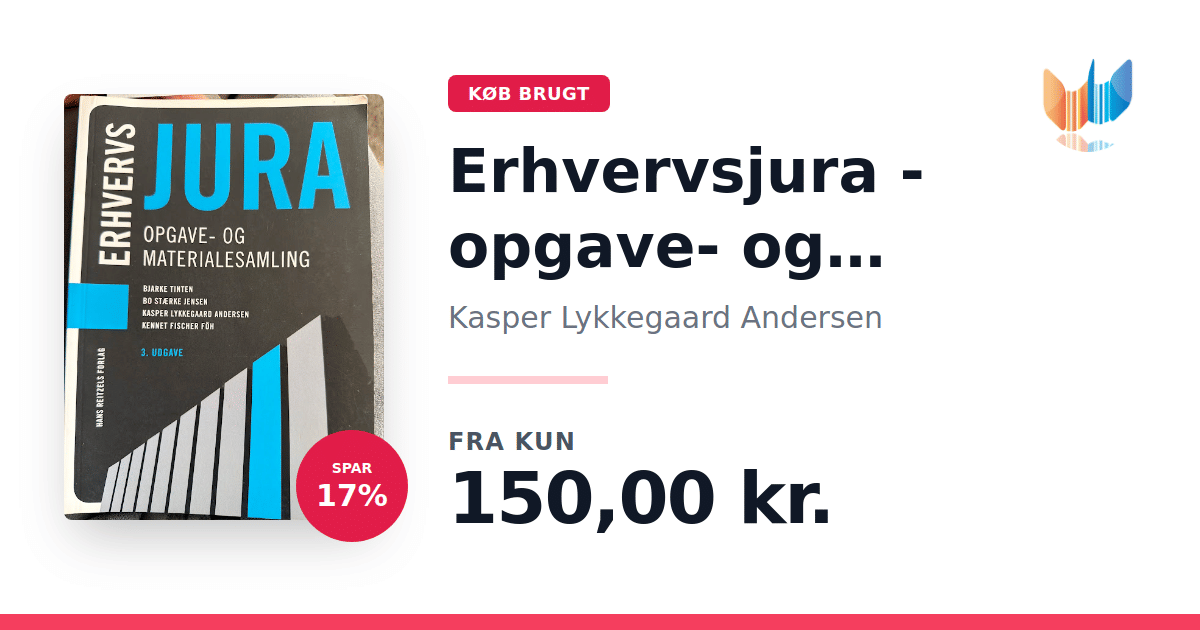 Lige nu kan du købe "Erhvervsjura - opgave- og materialesamling" af Kasper Lykkegaard Andersen til kun 150,00 kr. Du sparer hele 17% af nyprisen! Bogen du ser her er brugt, og i perfekt stand. Vi har i øjeblikket 3 eksemplarer til salg af "Erhvervsjura - opgave- og materialesamling", så husk at se de forskellige udgaver.