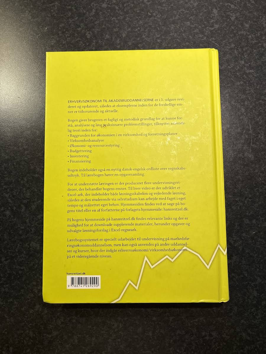 Denne 5. udgave af Erhvervsøkonomi til Akademiuddannelserne er specielt udviklet til undervisningen på markedsføringsøkonomuddannelsen og andre akademiske kurser, hvor virksomhedsøkonomi spiller en central rolle. Bogen er opdateret i overensstemmelse med den nye studieordning, og den indeholder aktuelle eksempler, som gør det muligt at forstå og anvende centrale metoder inden for virksomhedsanalyse, økonomi- og ressourcestyring, budgettering, investering og finansiering. Med et solidt fagligt og metodisk fundament hjælper bogen de studerende med at gribe praksisnære problemstillinger an. Der indgår desuden en praktisk dansk-engelsk ordliste over regnskabsudtryk, som gør det lettere at navigere i fagsproget. Samtidig understøttes læsningen af en tilhørende opgavesamling med en brugervenlig angivelse af sværhedsgraden, der giver mulighed for en målrettet repetition af stoffet.