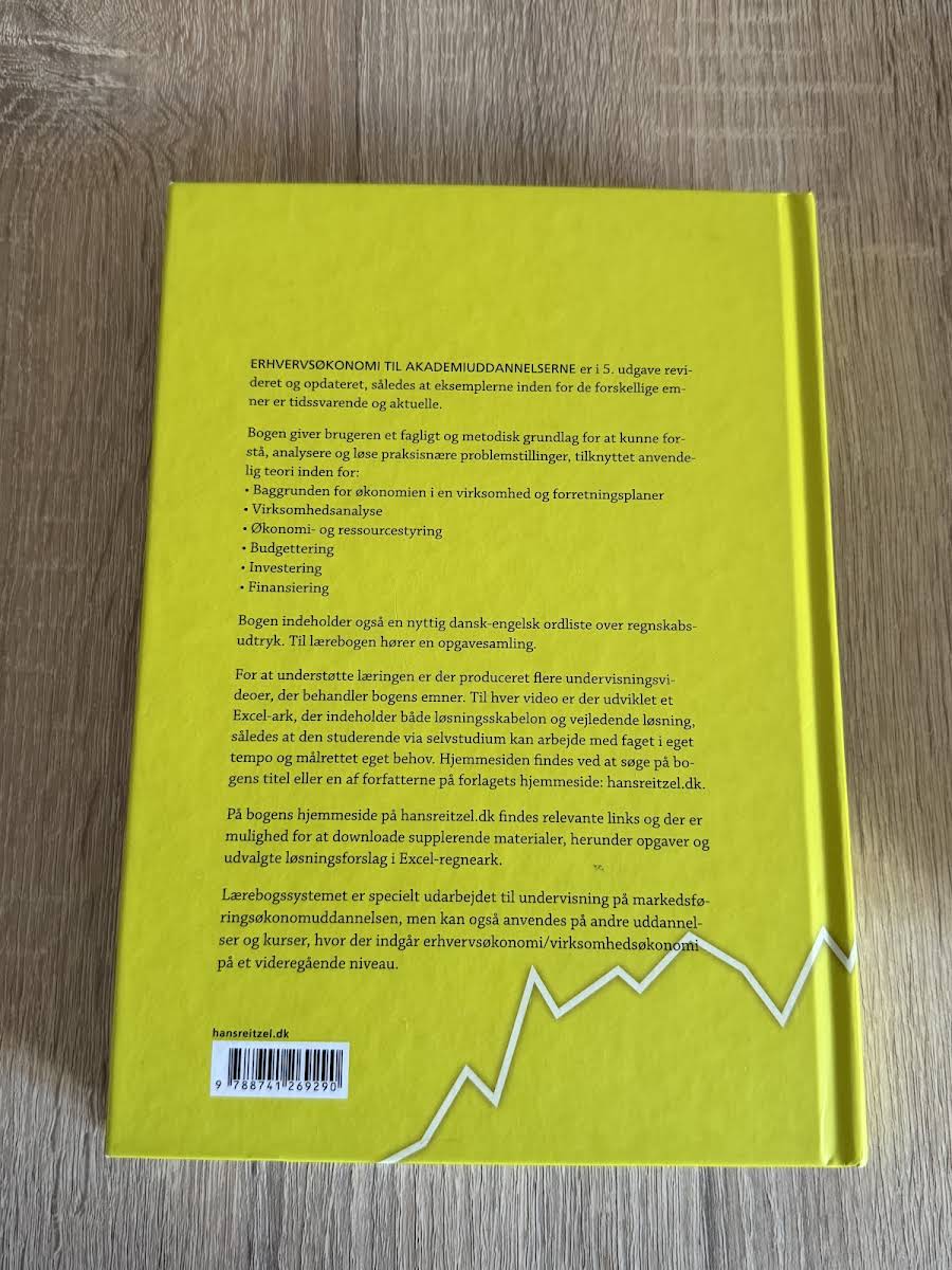 Denne 5. udgave af Erhvervsøkonomi til Akademiuddannelserne er specielt udviklet til undervisningen på markedsføringsøkonomuddannelsen og andre akademiske kurser, hvor virksomhedsøkonomi spiller en central rolle. Bogen er opdateret i overensstemmelse med den nye studieordning, og den indeholder aktuelle eksempler, som gør det muligt at forstå og anvende centrale metoder inden for virksomhedsanalyse, økonomi- og ressourcestyring, budgettering, investering og finansiering. Med et solidt fagligt og metodisk fundament hjælper bogen de studerende med at gribe praksisnære problemstillinger an. Der indgår desuden en praktisk dansk-engelsk ordliste over regnskabsudtryk, som gør det lettere at navigere i fagsproget. Samtidig understøttes læsningen af en tilhørende opgavesamling med en brugervenlig angivelse af sværhedsgraden, der giver mulighed for en målrettet repetition af stoffet.