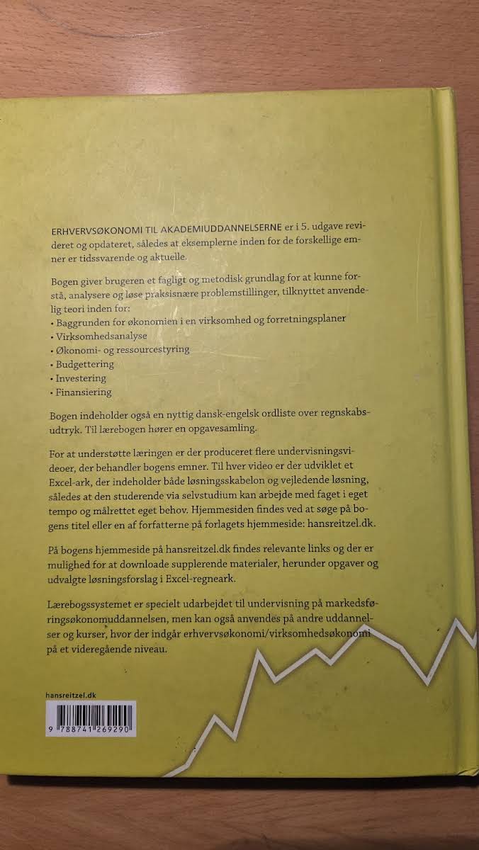 Denne 5. udgave af Erhvervsøkonomi til Akademiuddannelserne er specielt udviklet til undervisningen på markedsføringsøkonomuddannelsen og andre akademiske kurser, hvor virksomhedsøkonomi spiller en central rolle. Bogen er opdateret i overensstemmelse med den nye studieordning, og den indeholder aktuelle eksempler, som gør det muligt at forstå og anvende centrale metoder inden for virksomhedsanalyse, økonomi- og ressourcestyring, budgettering, investering og finansiering. Med et solidt fagligt og metodisk fundament hjælper bogen de studerende med at gribe praksisnære problemstillinger an. Der indgår desuden en praktisk dansk-engelsk ordliste over regnskabsudtryk, som gør det lettere at navigere i fagsproget. Samtidig understøttes læsningen af en tilhørende opgavesamling med en brugervenlig angivelse af sværhedsgraden, der giver mulighed for en målrettet repetition af stoffet.