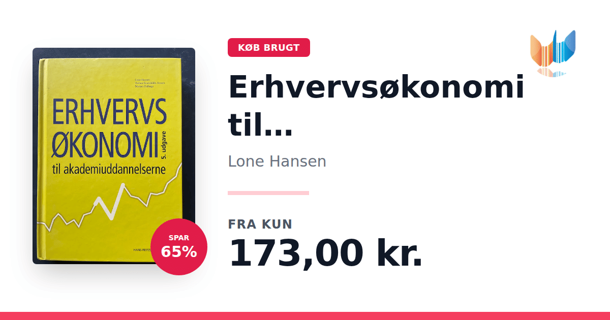 Lige nu kan du købe "Erhvervsøkonomi til Akademiuddannelserne" af Lone Hansen til kun 173,00 kr. Du sparer hele 65% af nyprisen! Bogen du ser her er brugt, og i perfekt stand. Vi har i øjeblikket 19 eksemplarer til salg af "Erhvervsøkonomi til Akademiuddannelserne", så husk at se de forskellige udgaver.