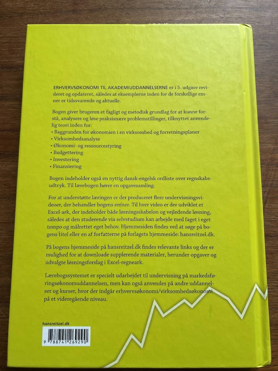 Denne 5. udgave af Erhvervsøkonomi til Akademiuddannelserne er specielt udviklet til undervisningen på markedsføringsøkonomuddannelsen og andre akademiske kurser, hvor virksomhedsøkonomi spiller en central rolle. Bogen er opdateret i overensstemmelse med den nye studieordning, og den indeholder aktuelle eksempler, som gør det muligt at forstå og anvende centrale metoder inden for virksomhedsanalyse, økonomi- og ressourcestyring, budgettering, investering og finansiering. Med et solidt fagligt og metodisk fundament hjælper bogen de studerende med at gribe praksisnære problemstillinger an. Der indgår desuden en praktisk dansk-engelsk ordliste over regnskabsudtryk, som gør det lettere at navigere i fagsproget. Samtidig understøttes læsningen af en tilhørende opgavesamling med en brugervenlig angivelse af sværhedsgraden, der giver mulighed for en målrettet repetition af stoffet.