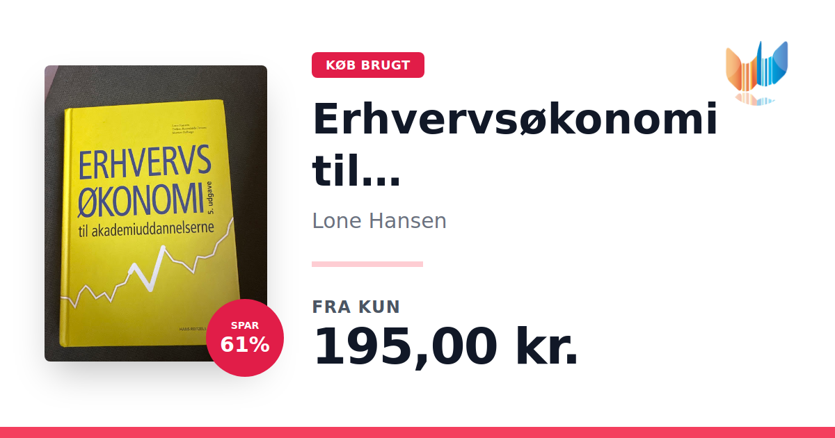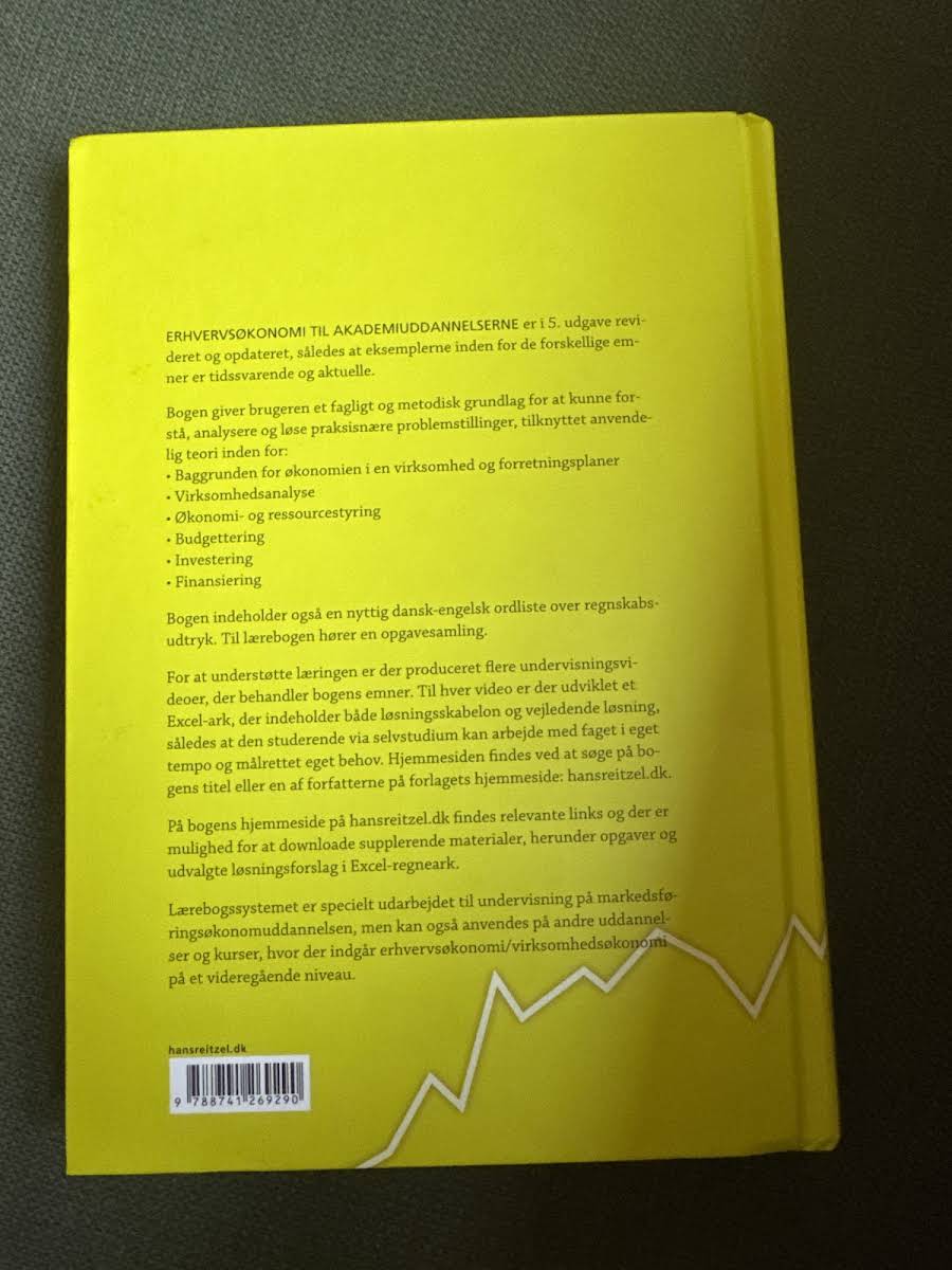 Denne 5. udgave af Erhvervsøkonomi til Akademiuddannelserne er specielt udviklet til undervisningen på markedsføringsøkonomuddannelsen og andre akademiske kurser, hvor virksomhedsøkonomi spiller en central rolle. Bogen er opdateret i overensstemmelse med den nye studieordning, og den indeholder aktuelle eksempler, som gør det muligt at forstå og anvende centrale metoder inden for virksomhedsanalyse, økonomi- og ressourcestyring, budgettering, investering og finansiering. Med et solidt fagligt og metodisk fundament hjælper bogen de studerende med at gribe praksisnære problemstillinger an. Der indgår desuden en praktisk dansk-engelsk ordliste over regnskabsudtryk, som gør det lettere at navigere i fagsproget. Samtidig understøttes læsningen af en tilhørende opgavesamling med en brugervenlig angivelse af sværhedsgraden, der giver mulighed for en målrettet repetition af stoffet.