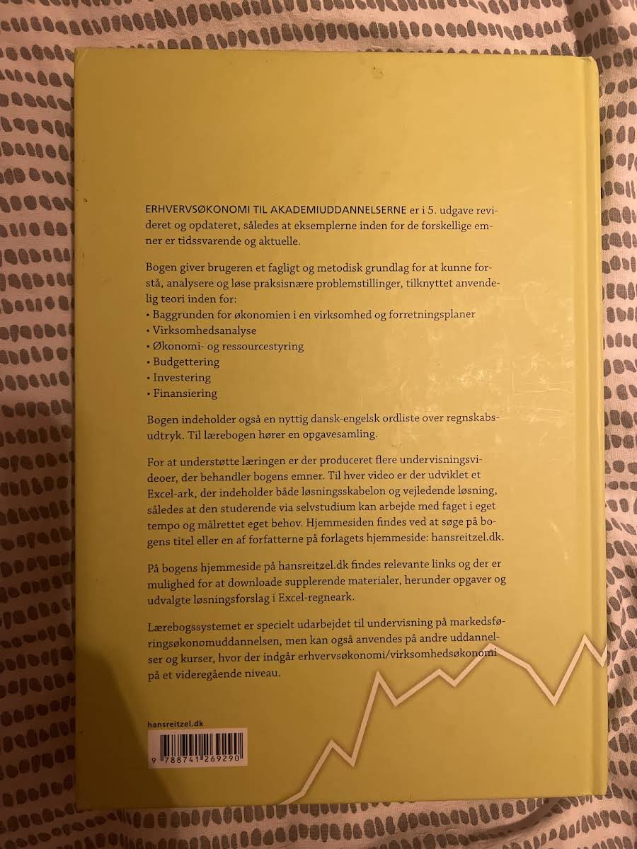 Denne 5. udgave af Erhvervsøkonomi til Akademiuddannelserne er specielt udviklet til undervisningen på markedsføringsøkonomuddannelsen og andre akademiske kurser, hvor virksomhedsøkonomi spiller en central rolle. Bogen er opdateret i overensstemmelse med den nye studieordning, og den indeholder aktuelle eksempler, som gør det muligt at forstå og anvende centrale metoder inden for virksomhedsanalyse, økonomi- og ressourcestyring, budgettering, investering og finansiering. Med et solidt fagligt og metodisk fundament hjælper bogen de studerende med at gribe praksisnære problemstillinger an. Der indgår desuden en praktisk dansk-engelsk ordliste over regnskabsudtryk, som gør det lettere at navigere i fagsproget. Samtidig understøttes læsningen af en tilhørende opgavesamling med en brugervenlig angivelse af sværhedsgraden, der giver mulighed for en målrettet repetition af stoffet.