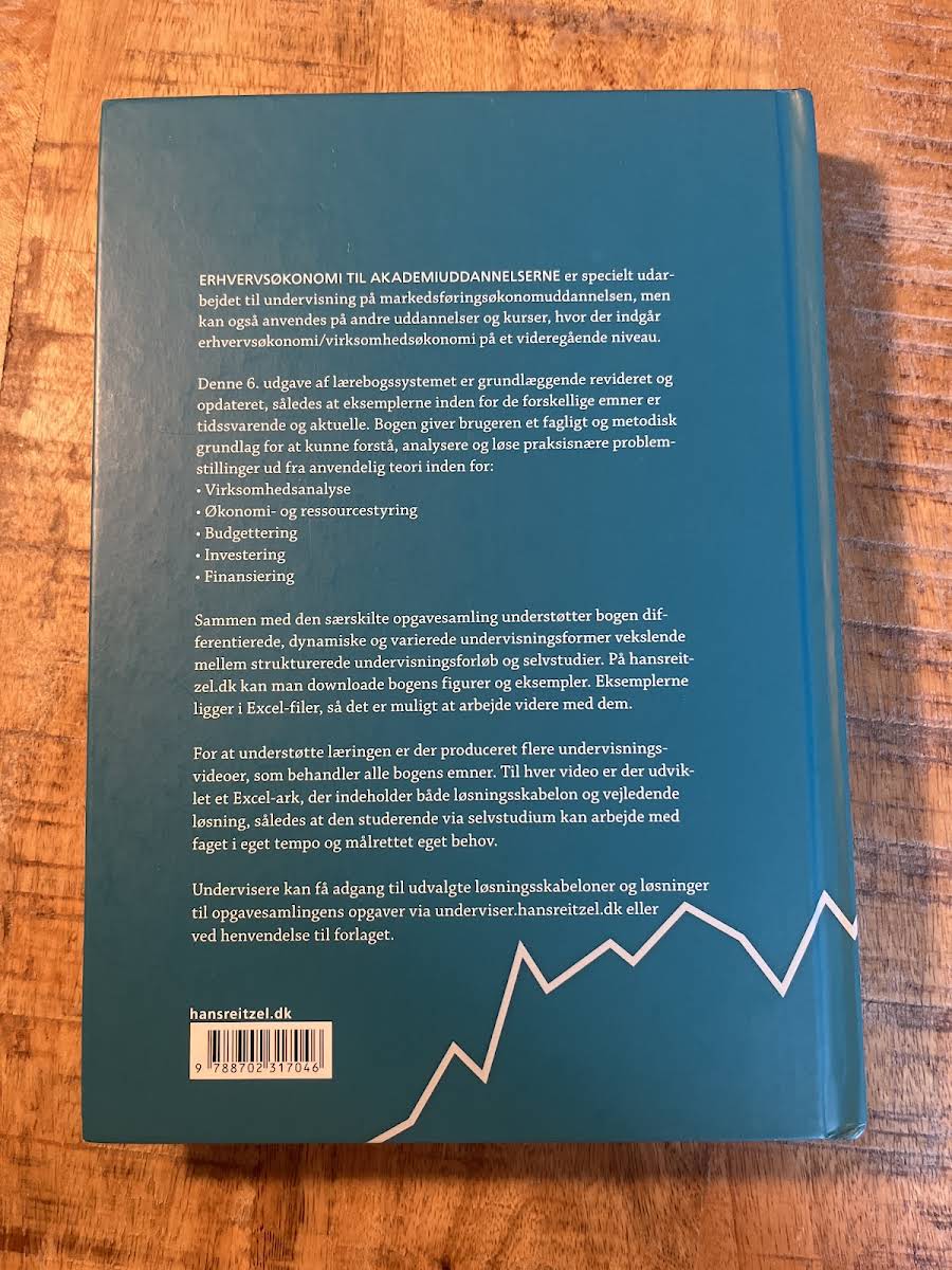 Erhvervsøkonomi til Akademiuddannelserne er udarbejdet med henblik på at give studerende et solidt fagligt og metodisk grundlag, så de kan forstå, analysere og løse praksisnære problemstillinger med udgangspunkt i relevant teori. Den 6. udgave er grundigt revideret og opdateret med tidssvarende eksempler, der afspejler nutidens erhvervsliv og økonomiske forhold. Bogen behandler centrale emner inden for virksomhedsanalyse, økonomi- og ressourcestyring, budgettering, investering og finansiering. Den er tilrettelagt, så den både understøtter strukturerede undervisningsforløb og selvstændigt studium, og den indeholder opgavesamlinger og digitale materialer, der fremmer læringen gennem praktisk anvendelse og øvelser.