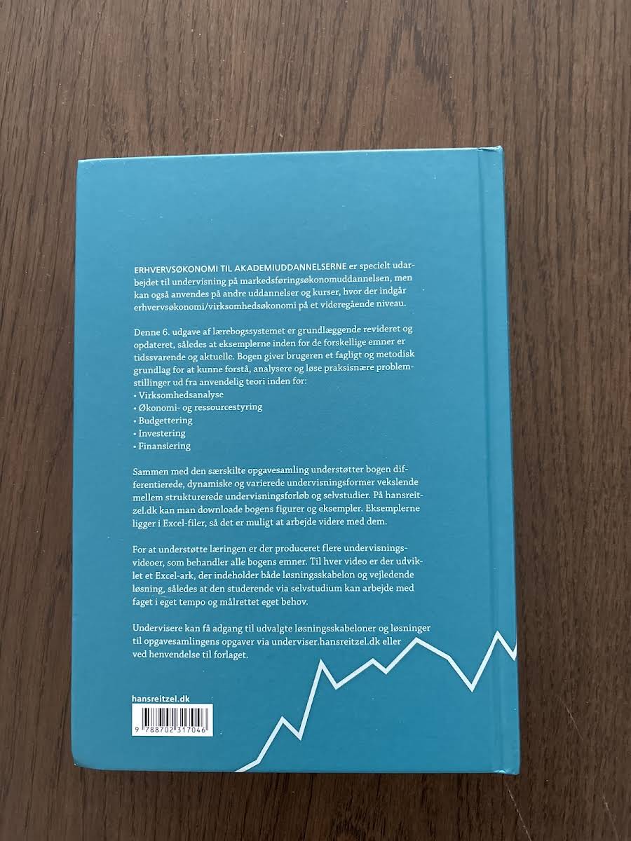 Erhvervsøkonomi til Akademiuddannelserne er udarbejdet med henblik på at give studerende et solidt fagligt og metodisk grundlag, så de kan forstå, analysere og løse praksisnære problemstillinger med udgangspunkt i relevant teori. Den 6. udgave er grundigt revideret og opdateret med tidssvarende eksempler, der afspejler nutidens erhvervsliv og økonomiske forhold. Bogen behandler centrale emner inden for virksomhedsanalyse, økonomi- og ressourcestyring, budgettering, investering og finansiering. Den er tilrettelagt, så den både understøtter strukturerede undervisningsforløb og selvstændigt studium, og den indeholder opgavesamlinger og digitale materialer, der fremmer læringen gennem praktisk anvendelse og øvelser.