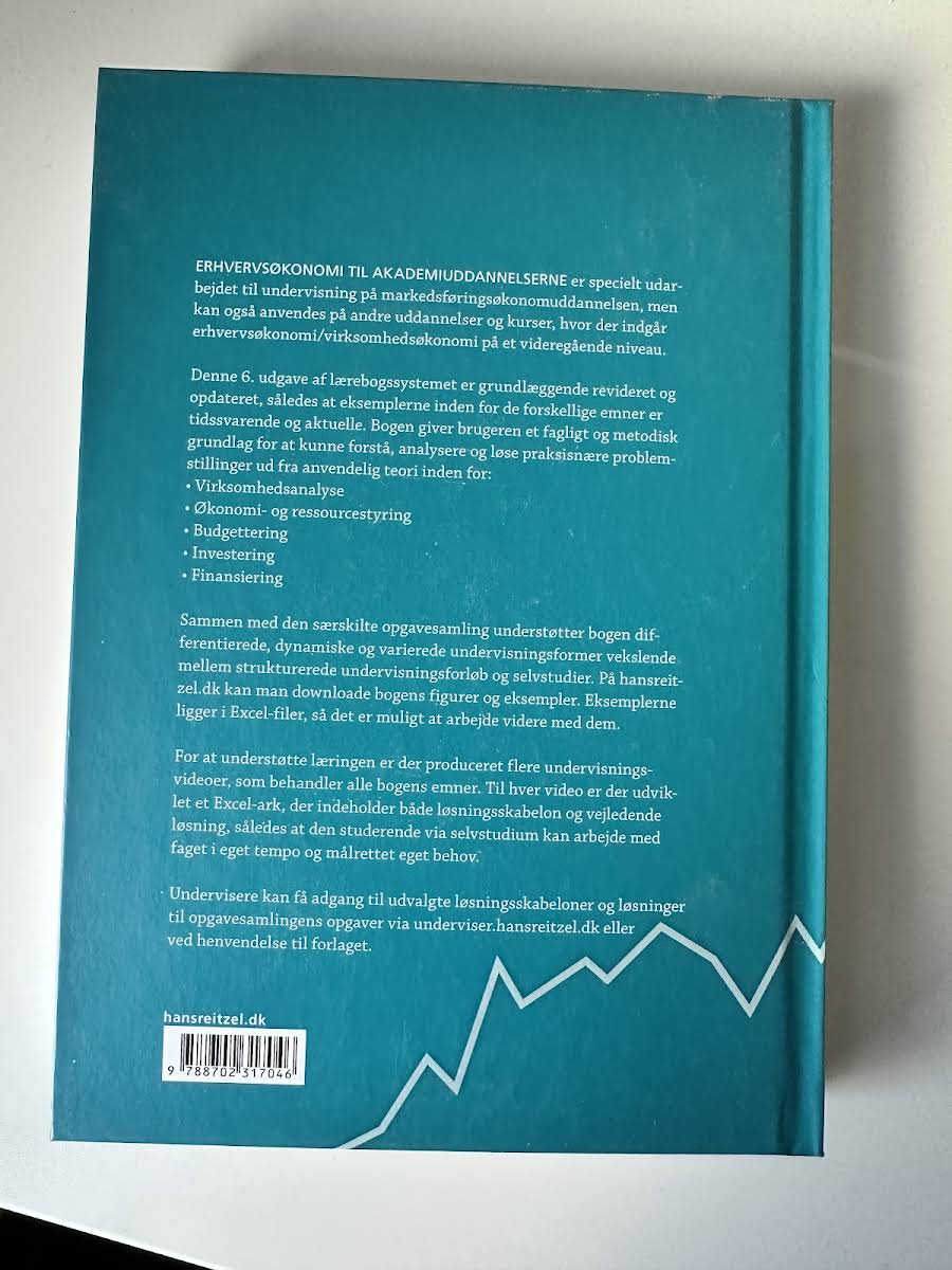 Erhvervsøkonomi til Akademiuddannelserne er udarbejdet med henblik på at give studerende et solidt fagligt og metodisk grundlag, så de kan forstå, analysere og løse praksisnære problemstillinger med udgangspunkt i relevant teori. Den 6. udgave er grundigt revideret og opdateret med tidssvarende eksempler, der afspejler nutidens erhvervsliv og økonomiske forhold. Bogen behandler centrale emner inden for virksomhedsanalyse, økonomi- og ressourcestyring, budgettering, investering og finansiering. Den er tilrettelagt, så den både understøtter strukturerede undervisningsforløb og selvstændigt studium, og den indeholder opgavesamlinger og digitale materialer, der fremmer læringen gennem praktisk anvendelse og øvelser.