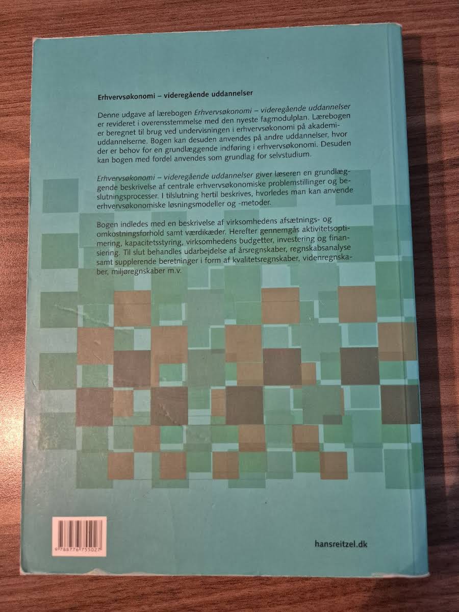 Denne reviderede tredje udgave af Erhvervsøkonomi - videregående uddannelser byder på en grundig og opdateret introduktion til de centrale principper i erhvervsøkonomi. Lærebogen er designet til akademiuddannelser samt andre uddannelser, hvor der er behov for en solid indføring i disciplingen. Bogen åbner med en detaljeret gennemgang af virksomhedens afsætnings- og omkostningsforhold samt en introduktion til værdikæder. Herefter uddybes centrale emner såsom aktivitetsoptimering, kapacitetsstyring og udviklingen af virksomhedens budgetter. Derudover indeholder bogen kapitler om investering, finansiering samt udarbejdelse og analyse af årsregnskaber, herunder også kvalitets- og miljøregnskaber. Med sine 472 sider giver denne udgave fra 2007 studerende en omfattende forståelse af erhvervsøkonomiens mange facetter, der både kombinerer teoretisk indsigt med praktiske eksempler.