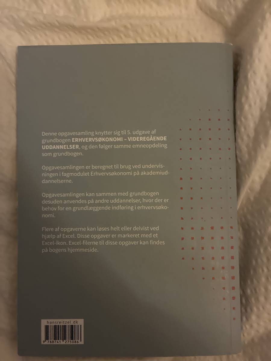 Denne opgavesamling er tilpasset den 5. udgave af grundbogen Erhvervsøkonomi – videregående uddannelser og følger nøje den samme emneopdeling. Bogen er udviklet af Bo Sundvang, Jan Furbo Sørensen og Knud Erik Bang og er designet til at understøtte undervisningen i erhvervsøkonomi på akademiuddannelserne. Med en struktureret tilgang til de centrale emner i faget, tjener denne opgavesamling som et værdifuldt redskab for studerende, der søger en grundlæggende indføring i erhvervsøkonomi. Den kan desuden anvendes i andre uddannelseskontekster, hvor et solidt fundament i emnet er påkrævet.