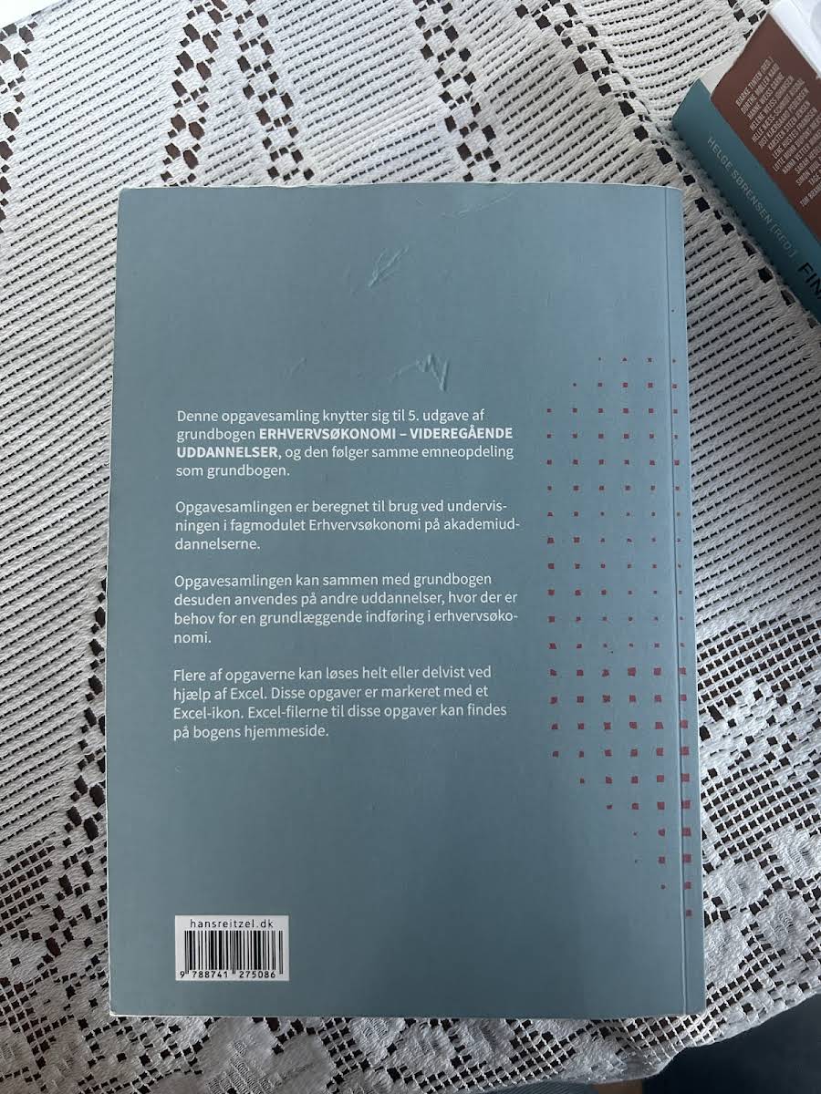 Denne opgavesamling er tilpasset den 5. udgave af grundbogen Erhvervsøkonomi – videregående uddannelser og følger nøje den samme emneopdeling. Bogen er udviklet af Bo Sundvang, Jan Furbo Sørensen og Knud Erik Bang og er designet til at understøtte undervisningen i erhvervsøkonomi på akademiuddannelserne. Med en struktureret tilgang til de centrale emner i faget, tjener denne opgavesamling som et værdifuldt redskab for studerende, der søger en grundlæggende indføring i erhvervsøkonomi. Den kan desuden anvendes i andre uddannelseskontekster, hvor et solidt fundament i emnet er påkrævet.