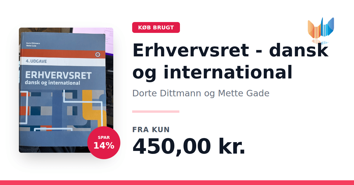 Lige nu kan du købe "Erhvervsret - dansk og international" af Dorte Dittmann og Mette Gade til kun 450,00 kr. Du sparer hele 14% af nyprisen! Bogen du ser her er brugt, og i perfekt stand. Vi har i øjeblikket 5 eksemplarer til salg af "Erhvervsret - dansk og international", så husk at se de forskellige udgaver.