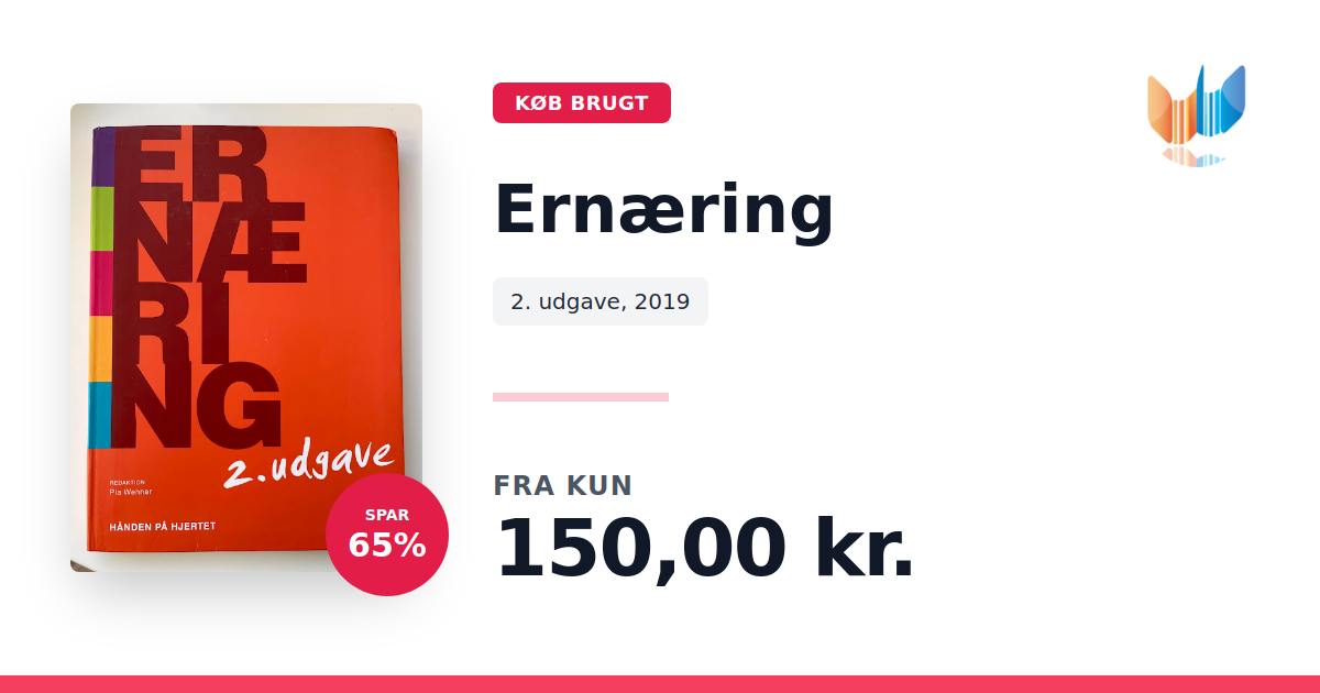 Lige nu kan du købe "Ernæring" til kun 150,00 kr. Du sparer hele 65% af nyprisen! Bogen du ser her er brugt, og i perfekt stand. Vi har i øjeblikket 4 eksemplarer til salg af "Ernæring - Hånden på hjertet", så husk at se de forskellige udgaver.