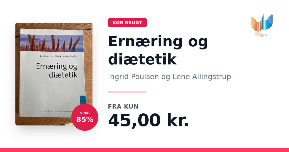 Lige nu kan du købe "Ernæring og diætetik" af Ingrid Poulsen og Lene Allingstrup til kun 45,00 kr. Du sparer hele 85% af nyprisen! Bogen du ser her er brugt, og i god stand. Vi har i øjeblikket 3 eksemplarer til salg af "Ernæring og diætetik", så husk at se de forskellige udgaver.