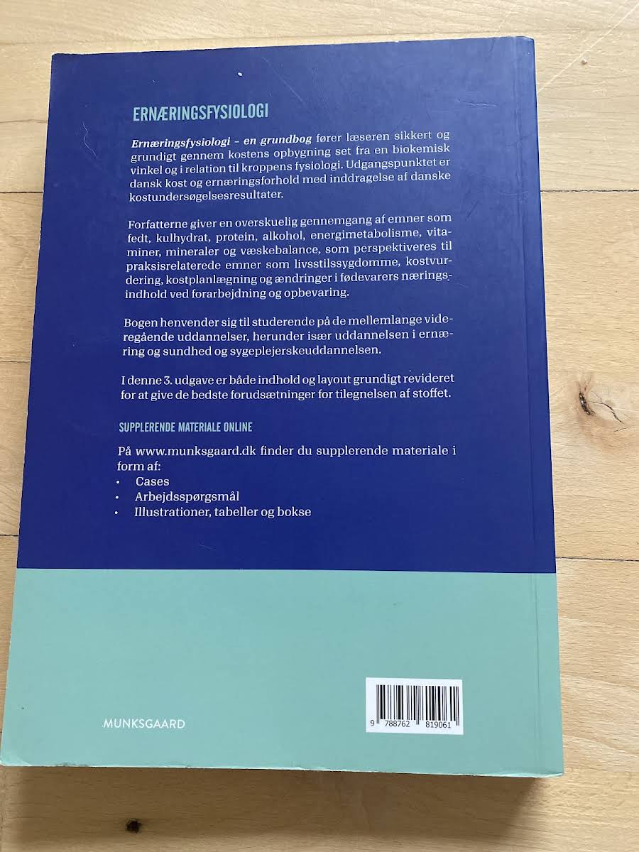 Ernæringsfysiologi – en grundbog til ernæringsvidenskaben præsenterer en solid og systematisk gennemgang af kostens sammensætning set ud fra en biokemisk og fysiologisk vinkel. Bogen baserer sig på danske kostvaner og ernæringsforhold, herunder opdaterede resultater fra nationale kostundersøgelser. Den digitale udgave indeholder desuden et udvalg af multiple choice-opgaver og PowerPoint-filer med illustrative elementer, der understøtter undervisningen. Med en klar og overskuelig fremstilling af centrale emner såsom fedt, kulhydrat, protein, alkohol, energimetabolisme, vitaminer, mineraler og væskebalance, sætter forfatterne fokus på de praksisnære aspekter, herunder livsstilssygdomme, kostvurdering, kostplanlægning og næringsstofændringer ved forarbejdning og opbevaring. Bogen er specielt rettet mod studerende inden for ernæring, sundhed og sygepleje og præsenteres i en revideret og opdateret 3. udgave, der sikrer de bedste forudsætninger for en grundig faglig tilegnelse af stoffet.