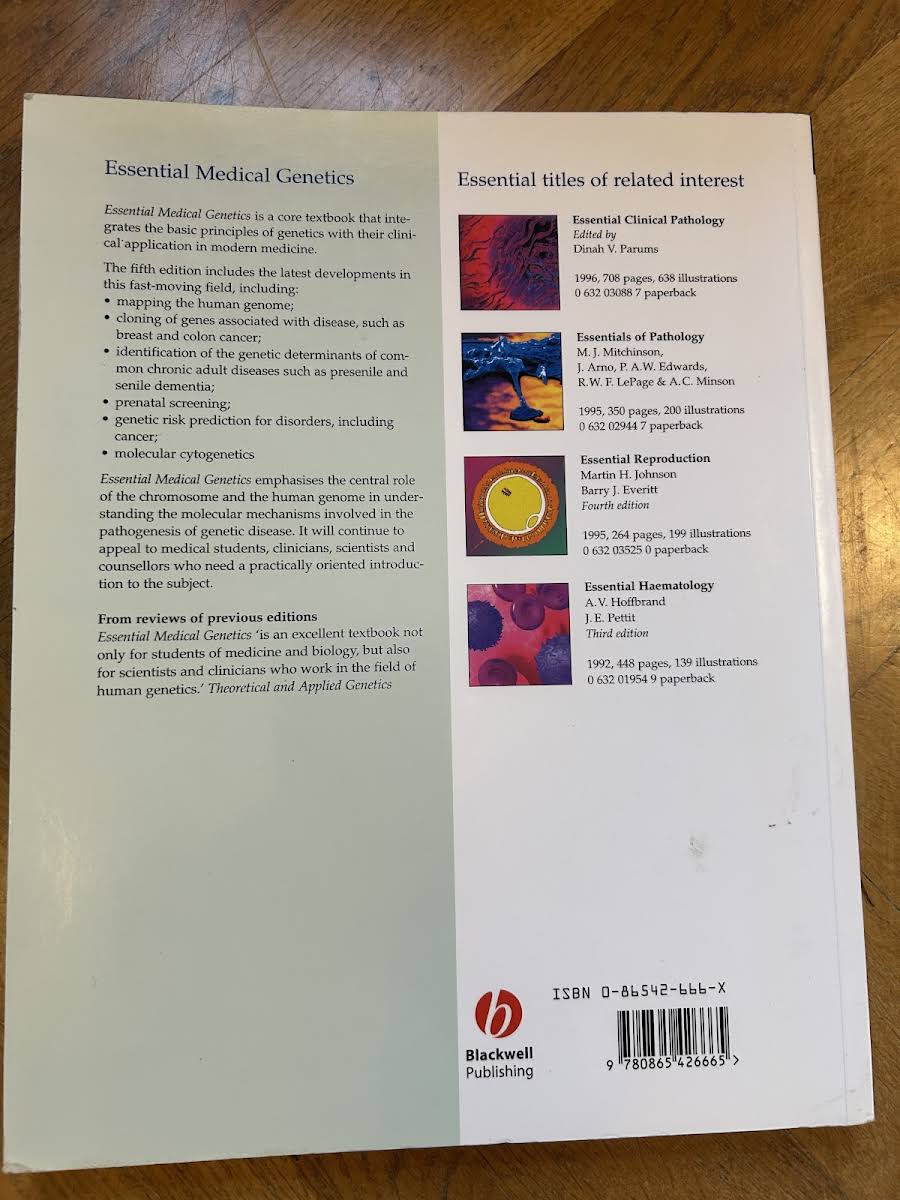 • Essential Medical Genetics, Michael Connor, Malcolm Ferguson-Smith, 9780865426665