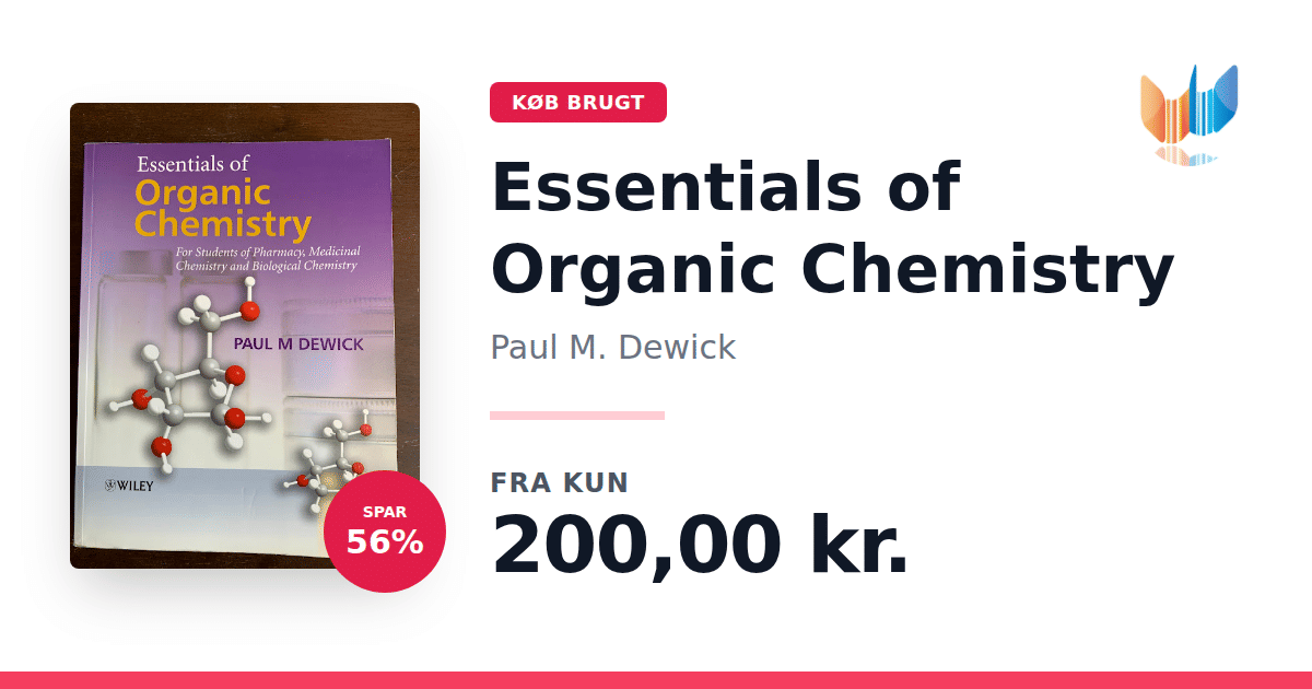 Lige nu kan du købe "Essentials of Organic Chemistry" af Paul M. Dewick til kun 200,00 kr. Du sparer hele 56% af nyprisen! Bogen du ser her er brugt, og i god stand. Vi har i øjeblikket kun et enkelt eksemplar til salg af "Essentials of Organic Chemistry", så slå til mens du kan!