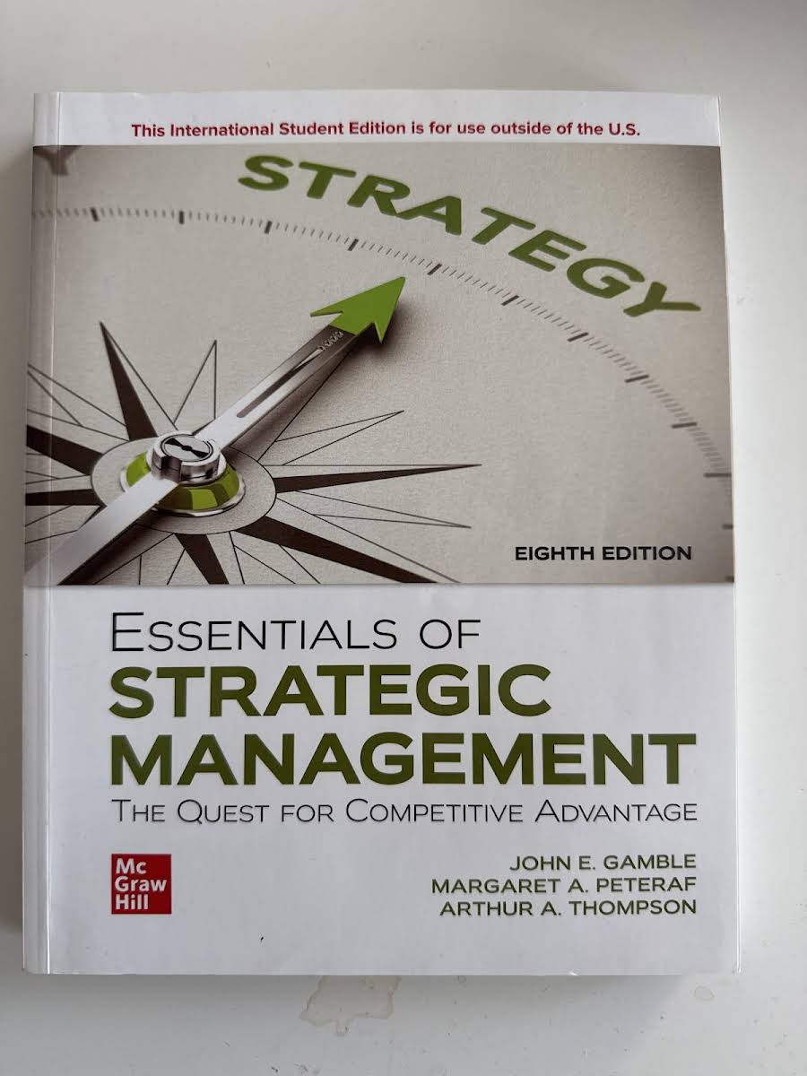 • Essentials of Strategic Management: The Quest for Competitive Advantage ISE, John Gamble, Arthur Thompson, Margaret Peteraf, 9781266227110
