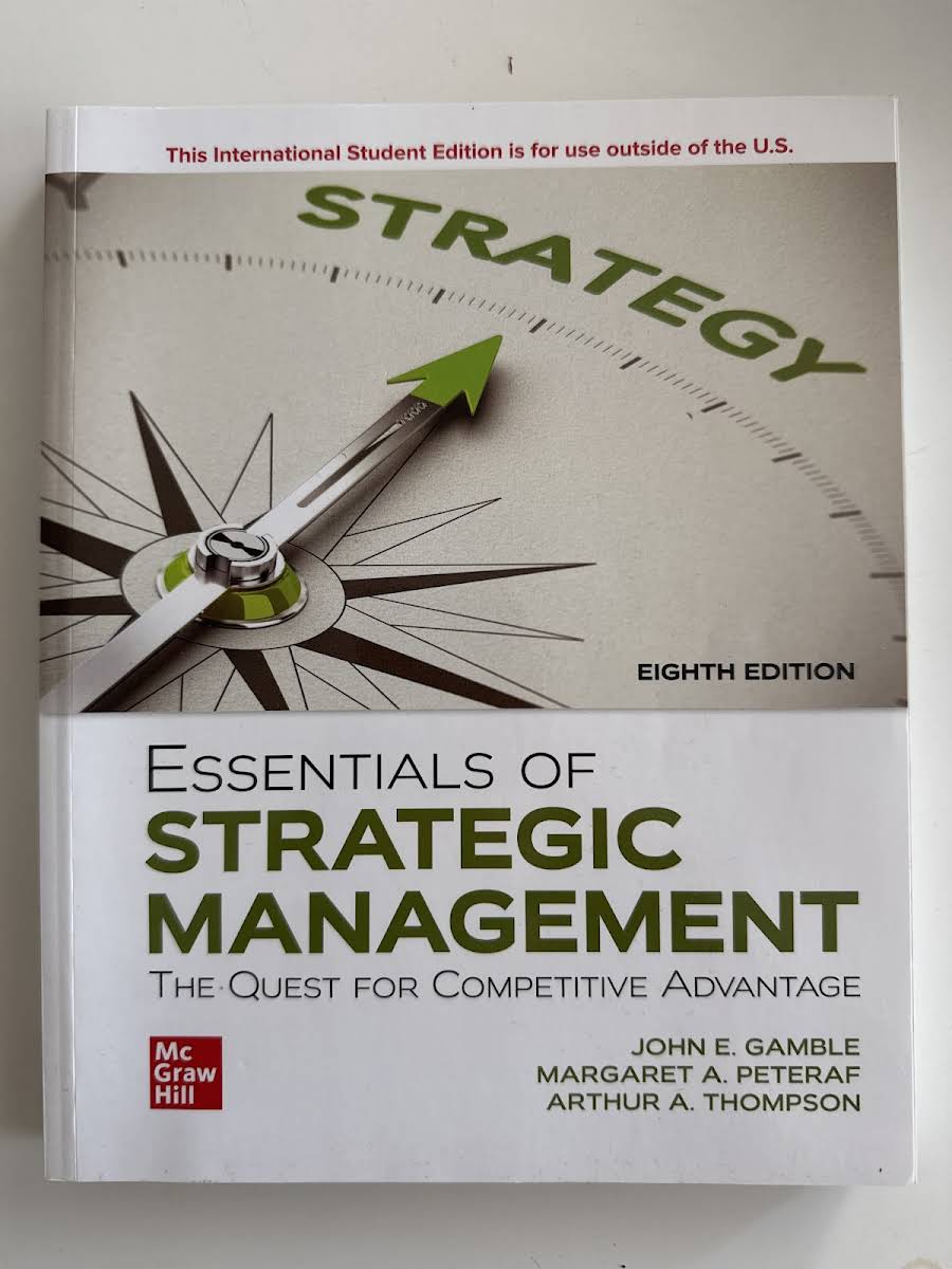 • Essentials of Strategic Management: The Quest for Competitive Advantage ISE, John Gamble, Arthur Thompson, Margaret Peteraf, 9781266227110