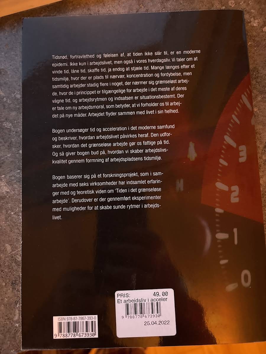 Tidsfølelsen krymper, og vi oplever en stadig stigende acceleration i vores arbejdsliv, hvor grænserne mellem arbejde og fritid udviskes. I takt med at vi konstant skal følge med udviklingen, bliver både hverdagen og arbejdspladsen præget af et uophørligt pres om at være tilstede og effektiv. Det er et fænomen, hvor behovet for nærvær og fordybelse ofte overskygges af en ny arbejdsmoral med ubegrænsede tilgængelighedskrav. I "Et arbejdsliv i acceleration - tiden og det grænseløse arbejde" belyses, hvordan acceleration og tidens konstante krav påvirker vores arbejdsmiljø og livskvalitet. Bogen bygger på et forskningsprojekt i samarbejde med en række virksomheder, hvor man har undersøgt dynamikkerne i det grænseløse arbejde. Her præsenteres også eksperimenter med metoder til at skabe mere sunde og rytmiske arbejdsforløb, med henblik på at danne grobund for en bedre balance mellem arbejdets krav og det personlige liv.