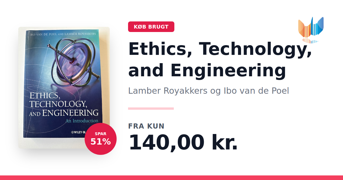 Ethics, Technology and Engineering: An Introduction af Lamber Royakkers og Ibo van de Poel er en grundbog målrettet ingeniørstuderende, der ønsker et solidt greb om etiske dilemmaer i moderne teknologipraksis. Bogen giver et klart overblik over, hvordan ingeniører kan navigere i komplekse beslutningsprocesser med samfundsmæssige og miljømæssige konsekvenser. Centrum i teksten er den systematiske etiske cyklus - en metode til at analysere og vurdere virkelige situationer. Internationale cases som Challenger Space Shuttle-ulykken, Herald of Free Enterprise-forliset og diskussioner om biofuelproduktion illustrerer trin for trin, hvordan man identificerer, reflekterer over og løser etiske problemstillinger. Forfatterne behandler en bred vifte af temaer, herunder etisk design, risikostyring, ansvarstildeling, bæredygtighed samt indførelse af nye teknologier. Kombinationen af teoretisk indsigt og praksisnære eksempler sikrer, at læseren får såvel metodiske værktøjer som forståelse for ingeniørfagets etiske dimensioner. Bogen indeholder desuden en introduktion til de vigtigste etiske teorier og et omfattende glosar med nøglebegreber. Som supplement kan den anvendes sammen med det online etiske værktøj Agora for at fordybe den praktiske case-analyse.