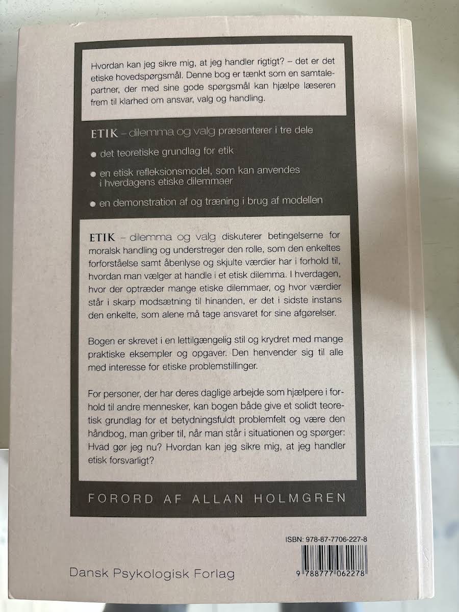 I "Etik – dilemma og valg" redegør Einar Aadland for, hvordan man står over for etiske udfordringer og træffer valg i hverdagen. Bogen byder på et solidt teoretisk grundlag, der sætter spørgsmålstegn ved, hvad det vil sige at handle rigtigt, og introducerer en etisk refleksionsmodel, som kan bruges til at navigere i komplekse dilemmaer. Gennem en lettilgængelig stil og med talrige praktiske eksempler og øvelser giver Aadland læseren værktøjer til at identificere og håndtere de moralske betingelser, der påvirker vores beslutninger. Bogen henvender sig bredt til alle, der interesserer sig for etik, og den tilbyder en klar vejledning i, hvordan man kan tage ansvar for sine handlinger, selv når værdier kolliderer.
