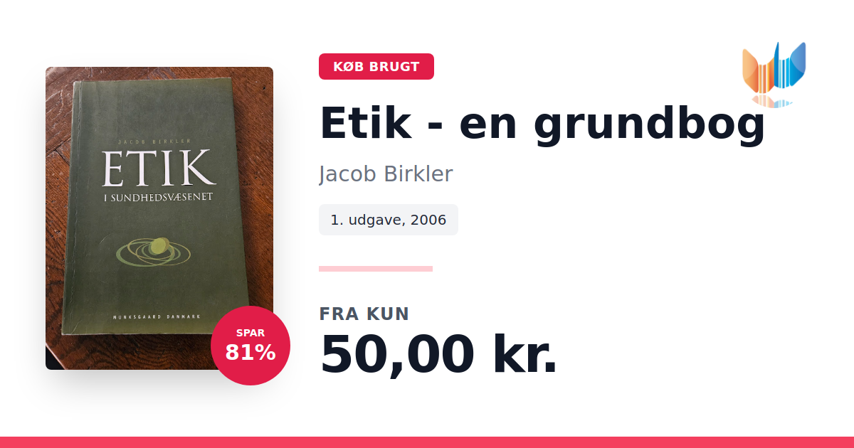 Lige nu kan du købe "Etik - en grundbog" af Jacob Birkler til kun 50,00 kr. Du sparer hele 81% af nyprisen! Bogen du ser her er brugt, og i god stand. Vi har i øjeblikket 5 eksemplarer til salg af "Etik - en grundbog", så husk at se de forskellige udgaver.