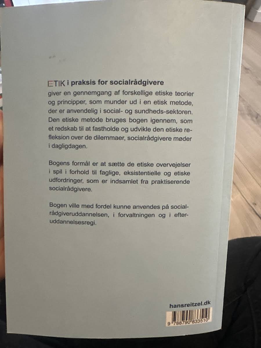 "Etik i praksis for socialrådgivere" byder på en grundig gennemgang af etiske teorier og principper, der sammen danner grundlag for en konkret etisk metode. Bogen omfatter en række redskaber, som kan anvendes til at fastholde og videreudvikle den etiske refleksion, der opstår i relation til de dilemmaer, socialrådgivere møder i deres dagligdag. Med en tæt forankring i praksisoplevelser fra autentiske socialrådgivere henvender bogen sig både til studerende under uddannelsen og til professionelt virkende socialrådgivere i efter- og videreuddannelse. Den etiske metode, som præsenteres, lægger vægt på at forbinde faglige og eksistentielle udfordringer, og hjælper læseren med at navigere sikkert i komplekse problemstillinger. Udgivet af Hans Reitzels Forlag i 2014 og præsenteret i paperback, er "Etik i praksis for socialrådgivere" et centralt redskab for alle, der ønsker at styrke deres etiske refleksion og praksis inden for social- og sundhedssektoren.